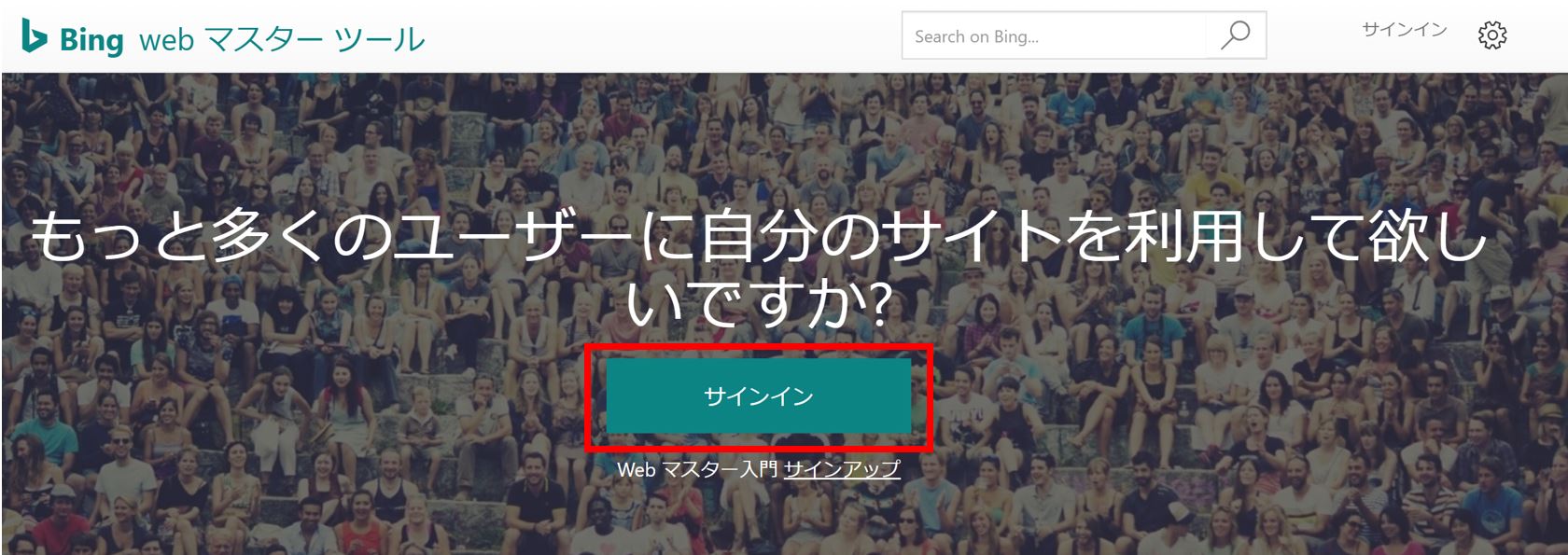 Bingウェブマスターツール公式サイトへアクセス。