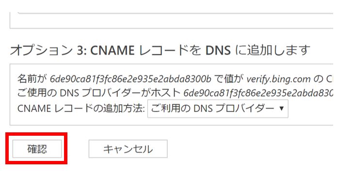 再びBingウェブマスターツール画面に戻り、左下の『確認』をクリック