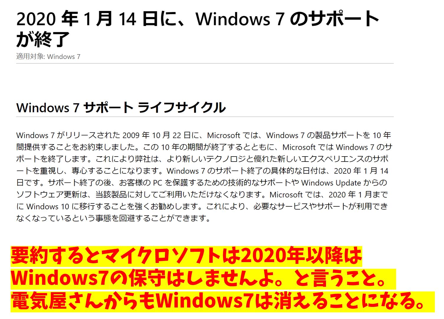 その理由として上げられるのが家庭や企業でも広く使われているパソコン『Windows7』の終焉が近いからです。