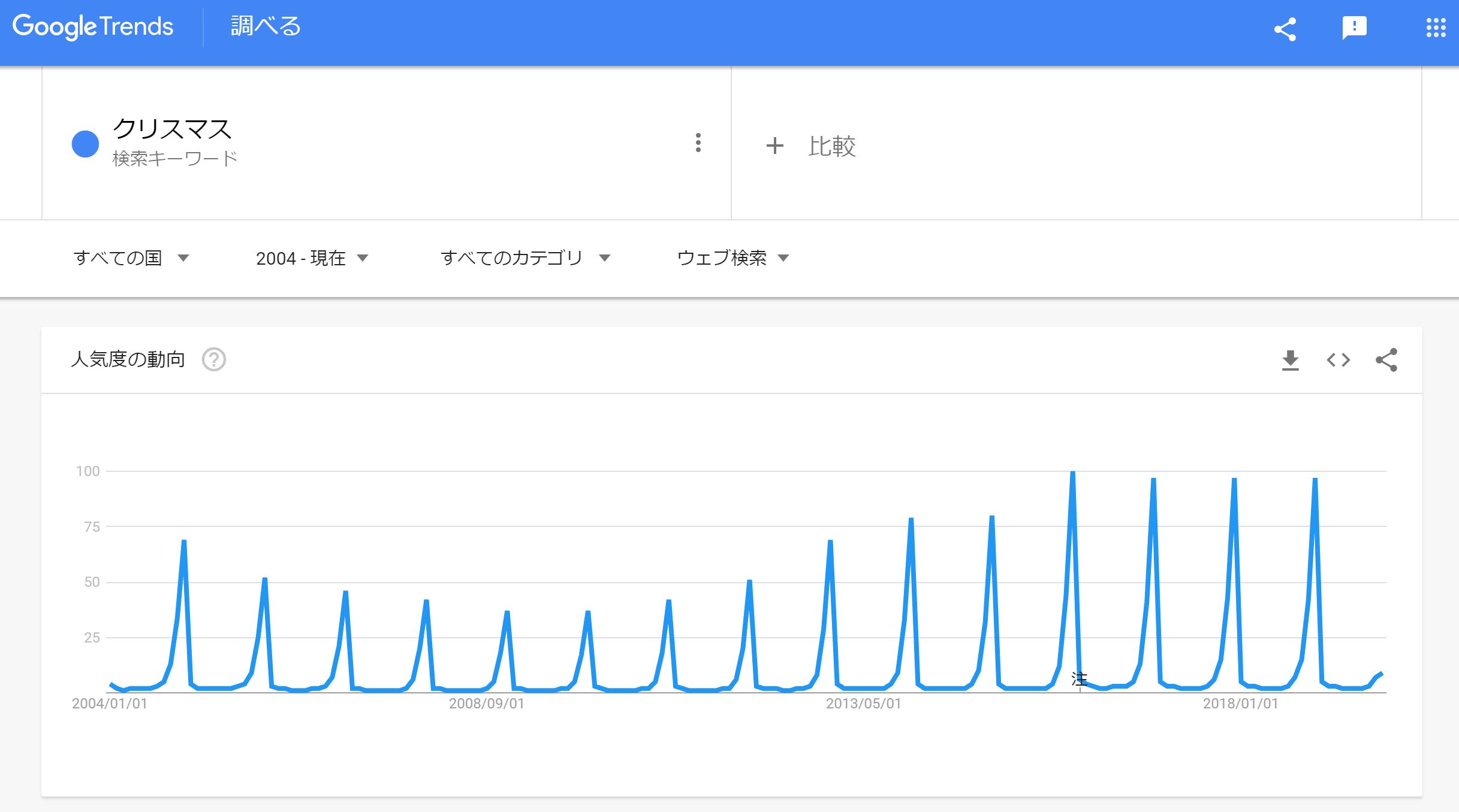 ちなみにクリスマスをGoogle Trendsで調べた結果はこんな感じです。