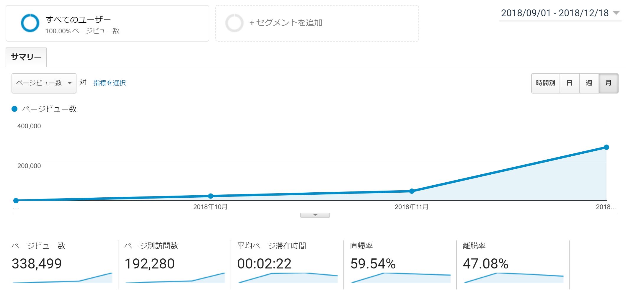 2018年9月ごろから実践した中古ドメインブログのアクセス推移は以下のような感じです↓