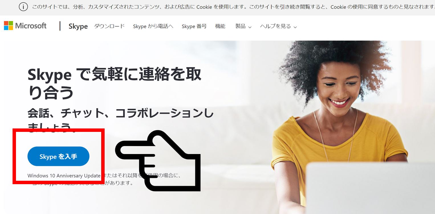 スカイプ公式サイトにアクセスします。