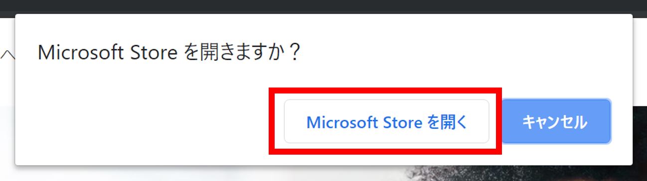 僕のインストール環境ではWindows10なので、下記のようにMicrosoft Storeを開くか、聞かれますので『Microsoft Store を開く』をクリックします。
