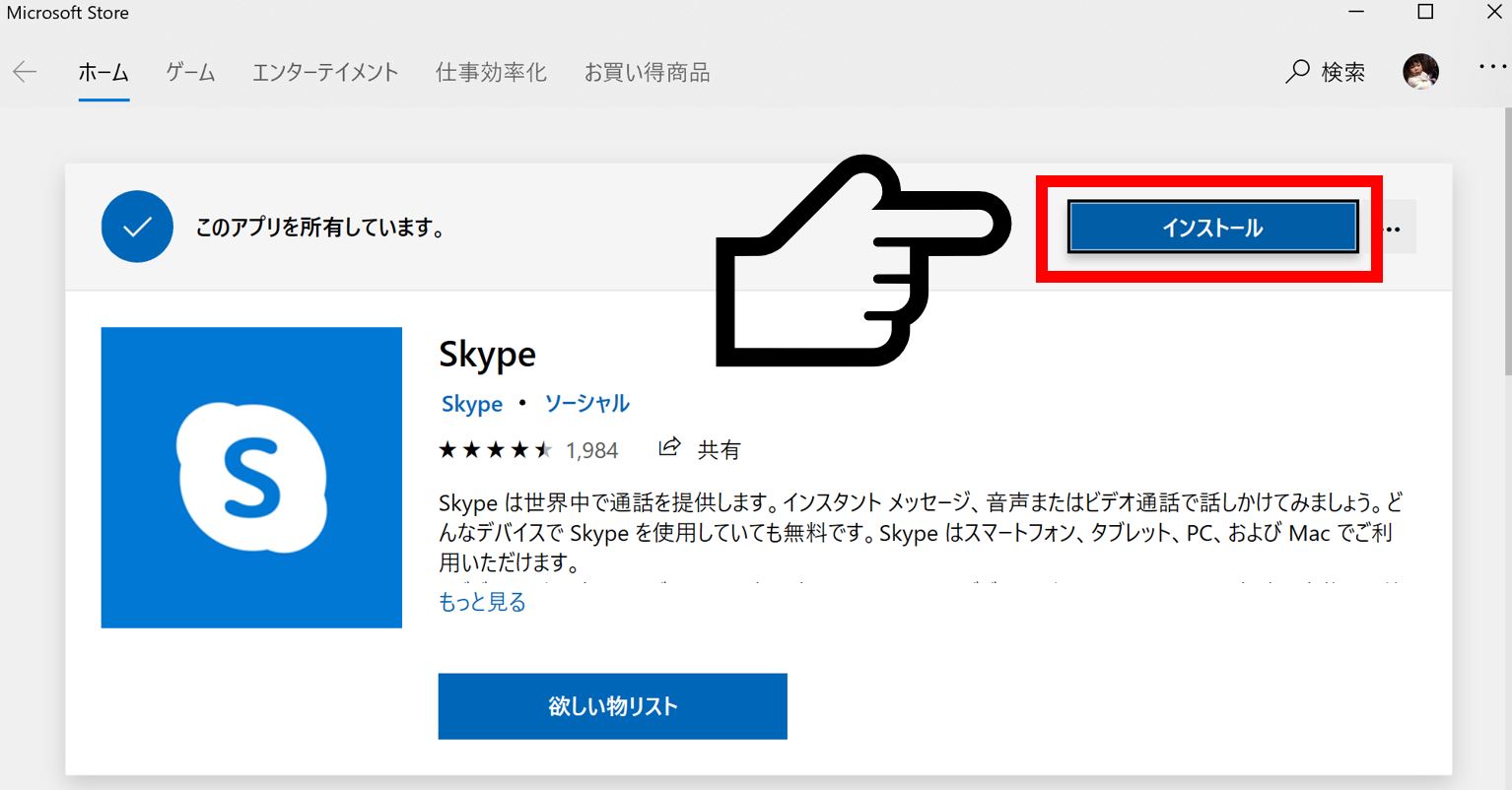 『Skypeを入手』をクリックします。