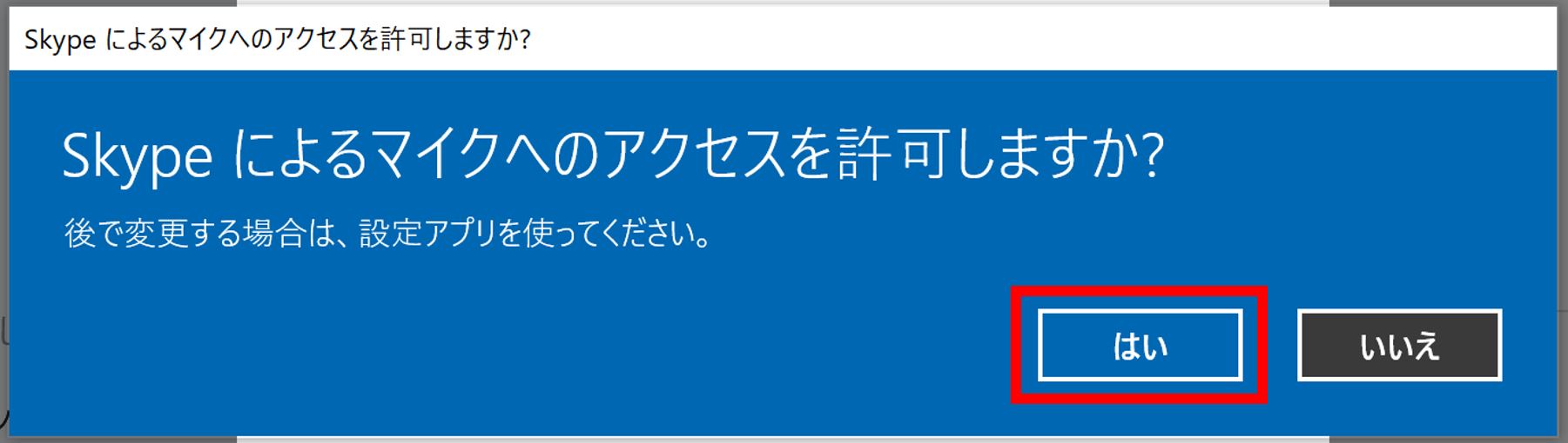 『Skypeによるマイクへのアクセスを許可しますか?』は『はい』を選択します。