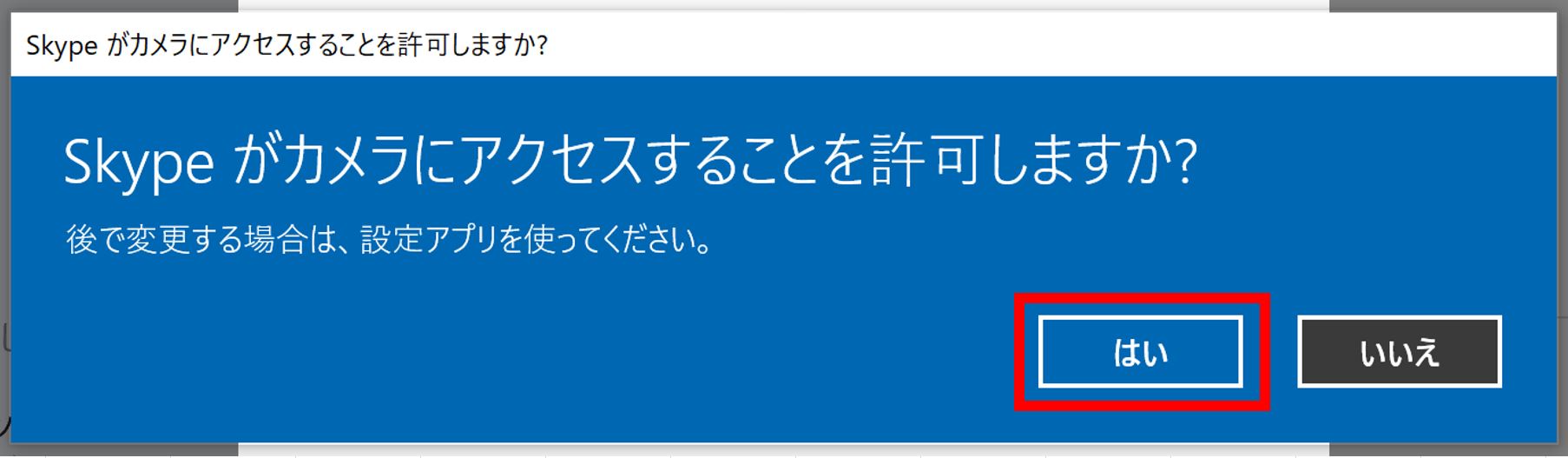 『Skypeがカメラにアクセスすることを許可しますか?』は『はい』を選択します。