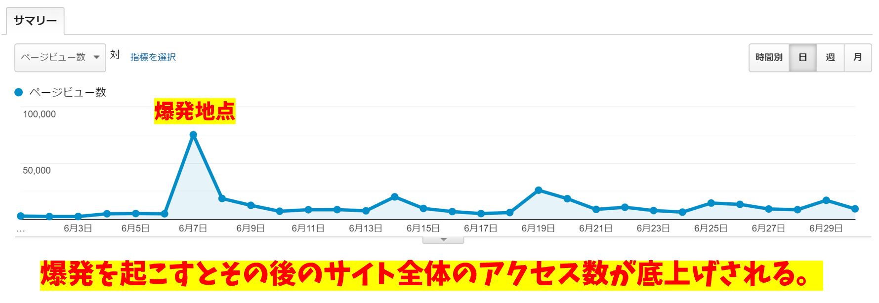 また爆発した記事からその他のブログ記事にもアクセスが流れ始めるので、ブログ全体のPV数が底上げされます。